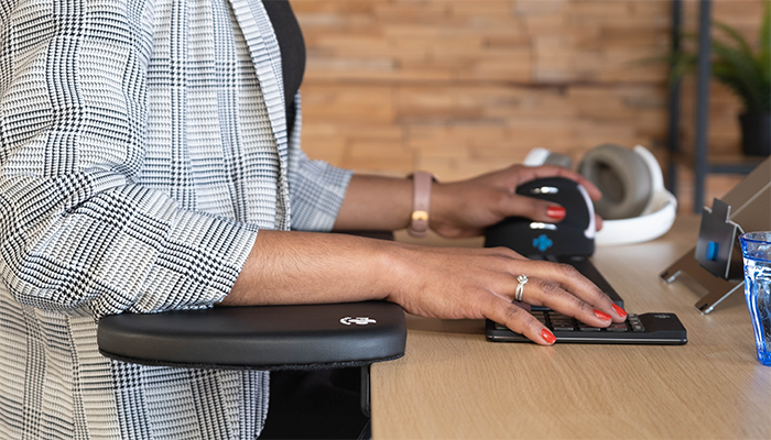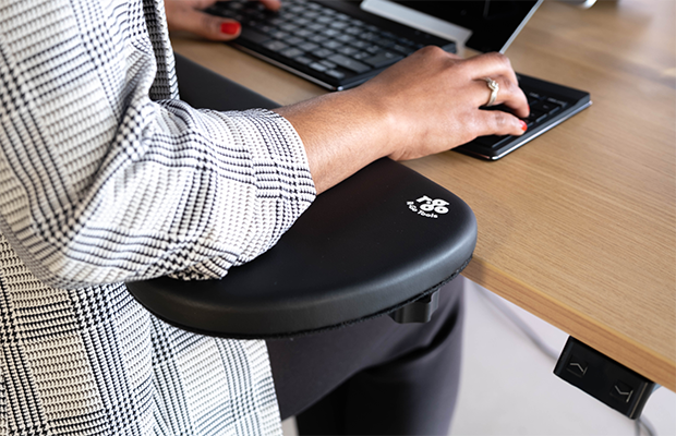 R-Go ergonomic armrest, symmetrical, soft foam, black.